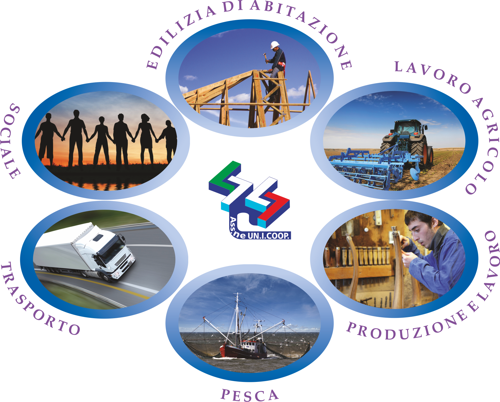Gli enti aderenti alla UN.I.COOP. sono ordinati in sei Dipartimenti Nazionali che organizzano le cooperative e/o i loro Consorzi in relazione alle rispettive aree di competenza: Trasporto, Edilizia di Abitazione, Lavoro Agricolo, Sociale, Pesca, Produzione e Lavoro.